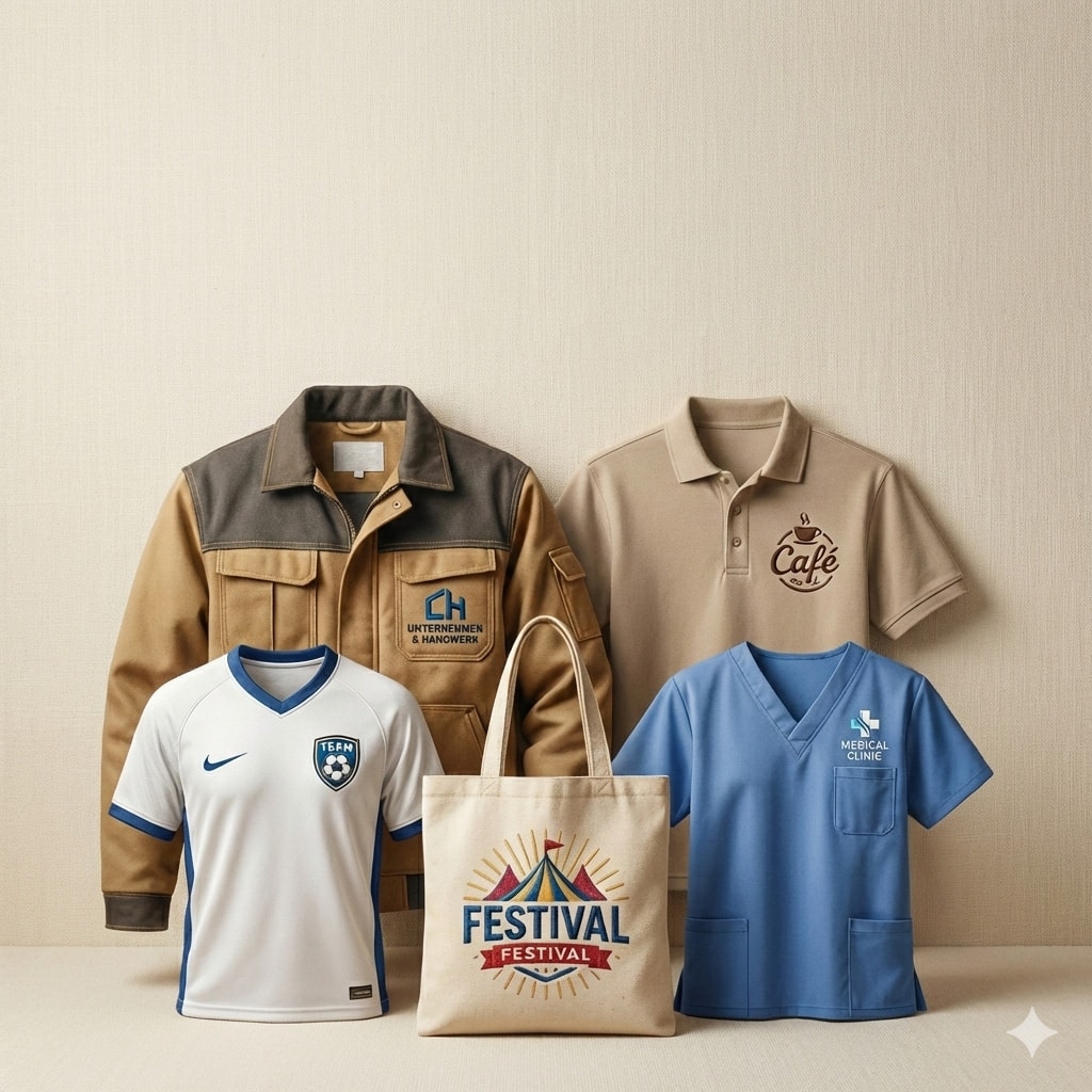 Unsere Stickerei kommt in vielen Bereichen zum Einsatz – von klassischer Firmen- und Vereinskleidung bis hin zu individuellen Textilien für spezielle Anforderungen.